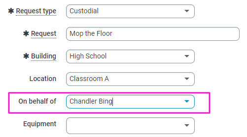 On behalf of: If another user requested the work order but didn't directly enter the request in FMX, select their name in here.
