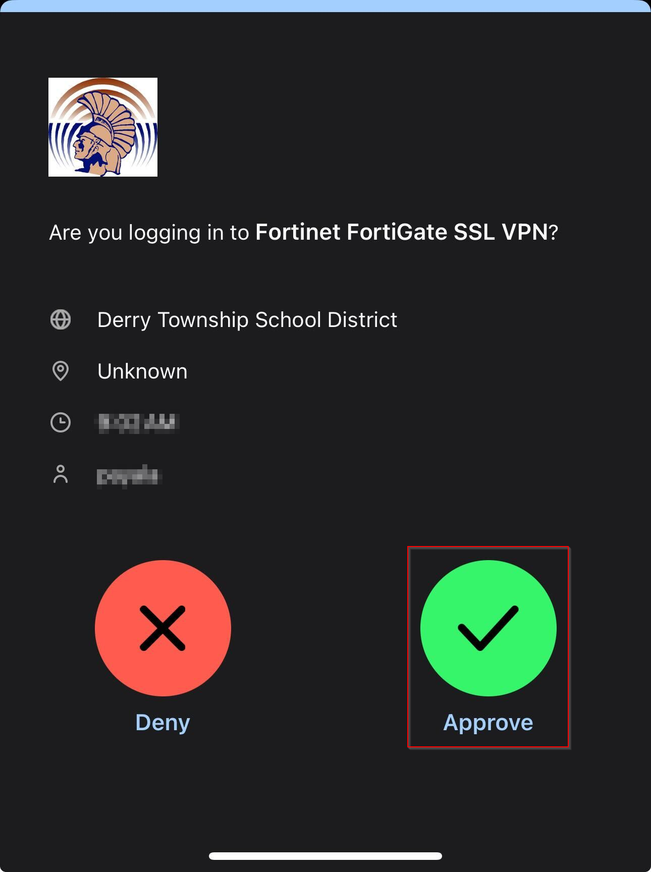 Right-click on FortiClient Shield Select Connect to "DTSD VPN" Open the Duo App on a mobile device, select Approve |